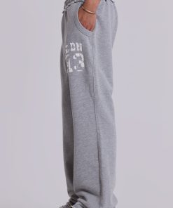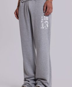 Grey marl low-rise slouchy bootcut joggers in loopback sweat with branded detail.