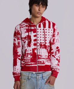 - All over flag collage screen print