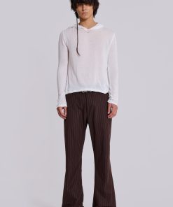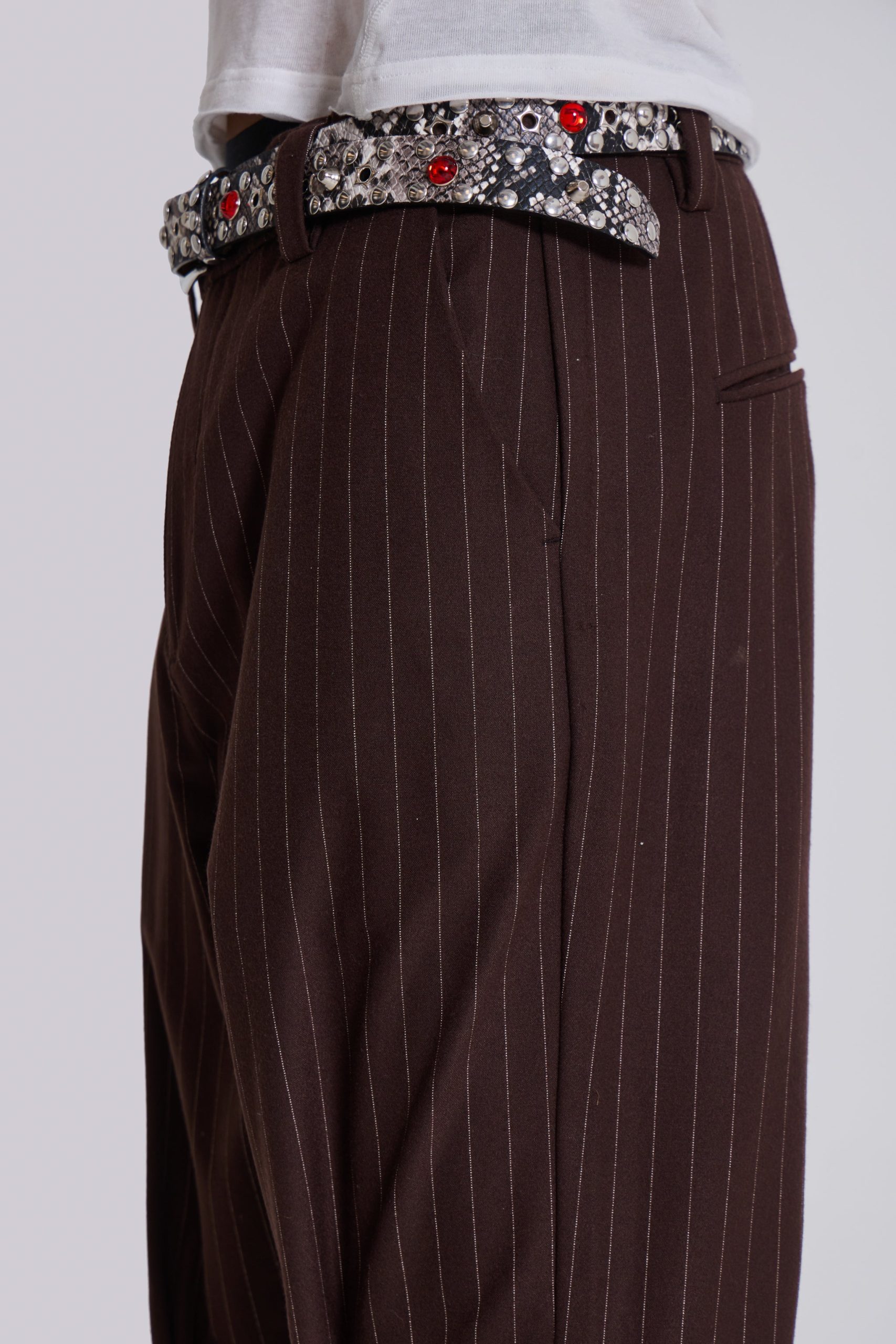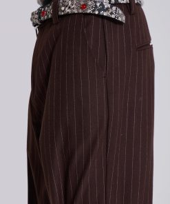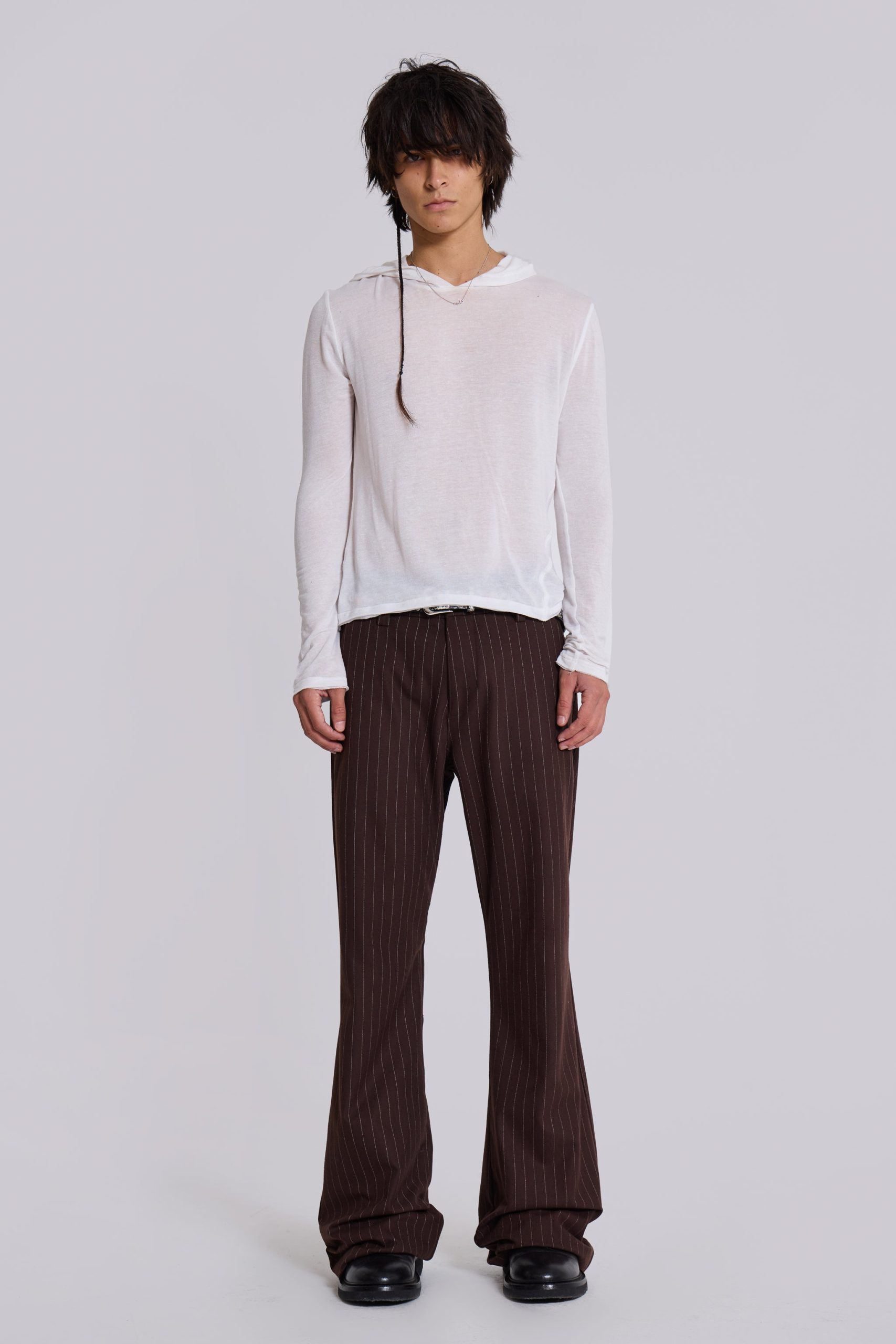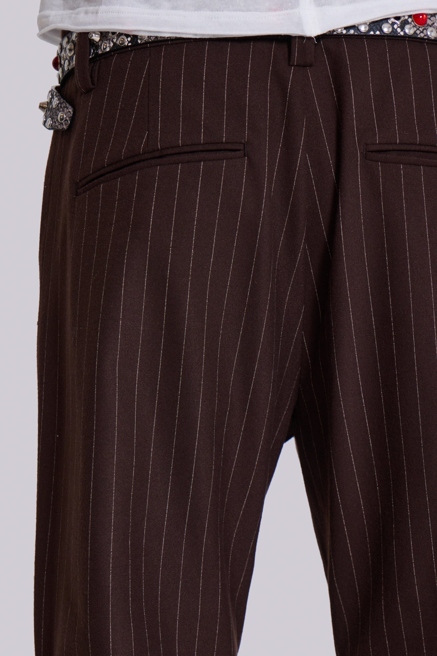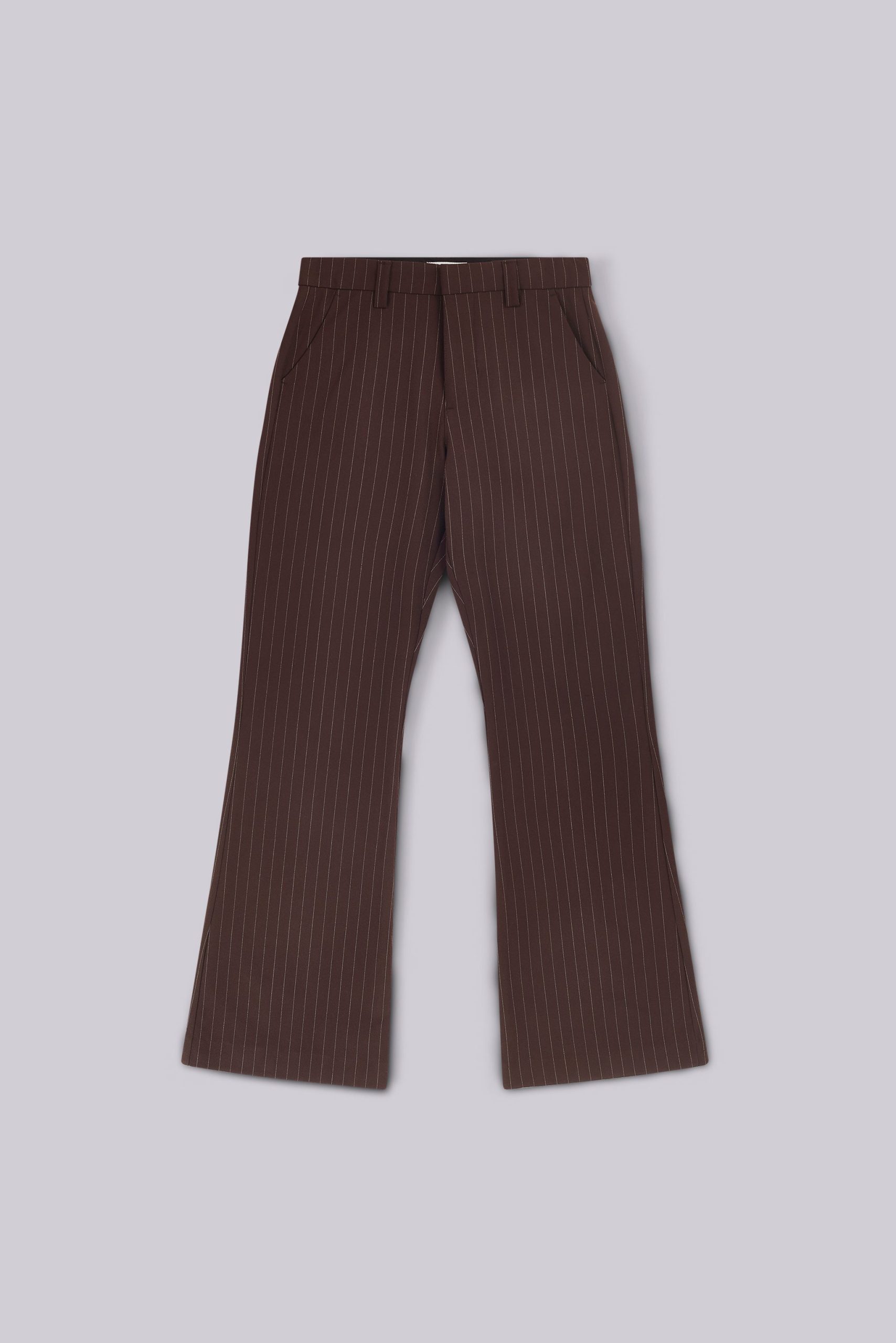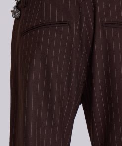 Brown Pinstripe Stacked Bootcut Suit Pants