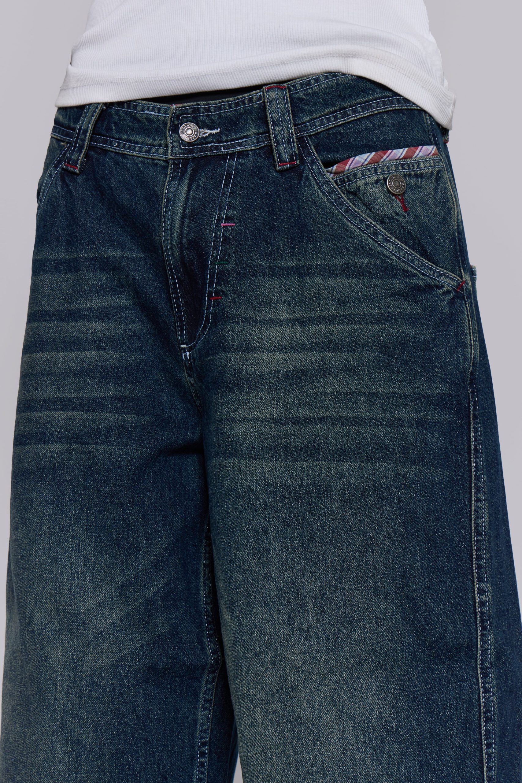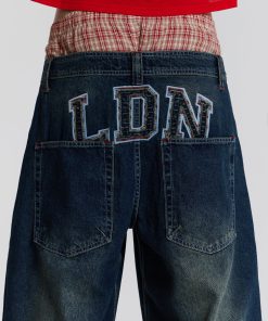 DescriptionIntroducing the LDN Colossus Jeans. Crafted from mid-blue denim with a low-rise Colossus fit, these statement jeans feature a “LDN” denim applique with woven check trims, and five pocket styling. The waistband lining is finished with contrasting woven check trim and multi stitch colour detailing.
