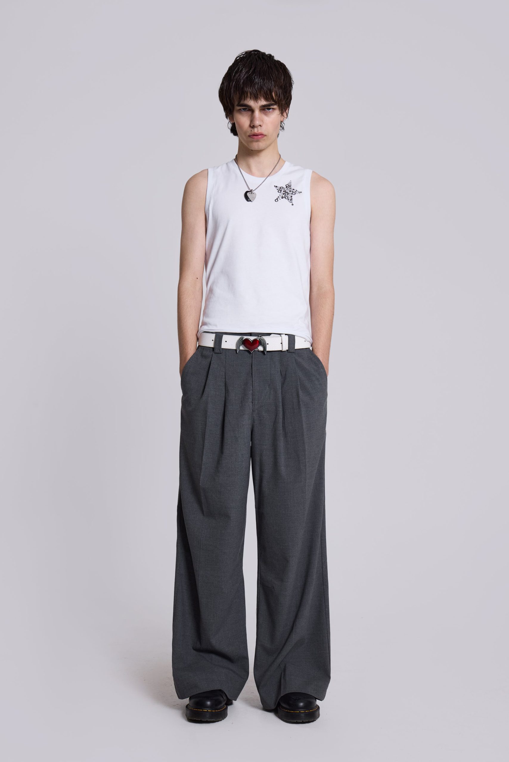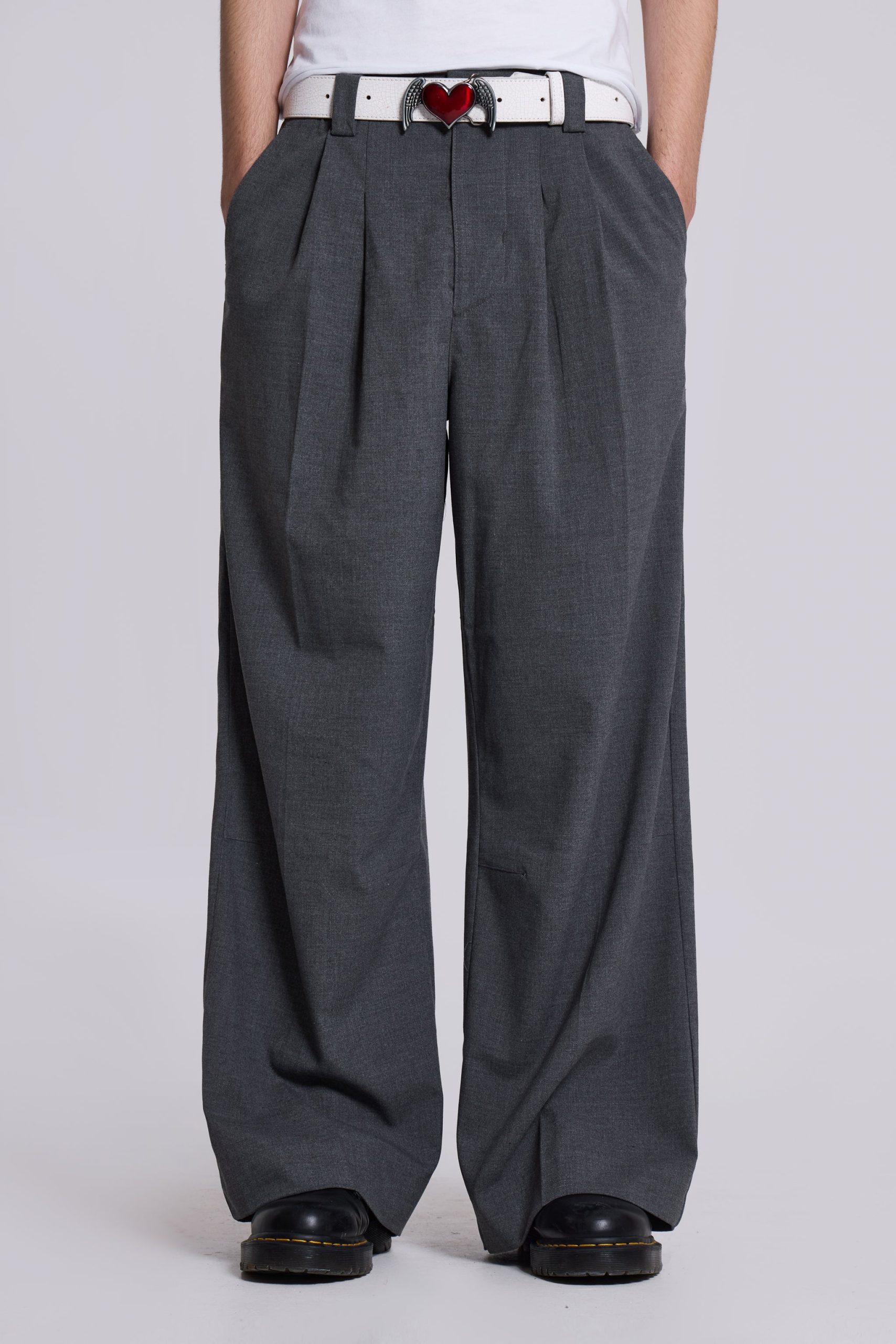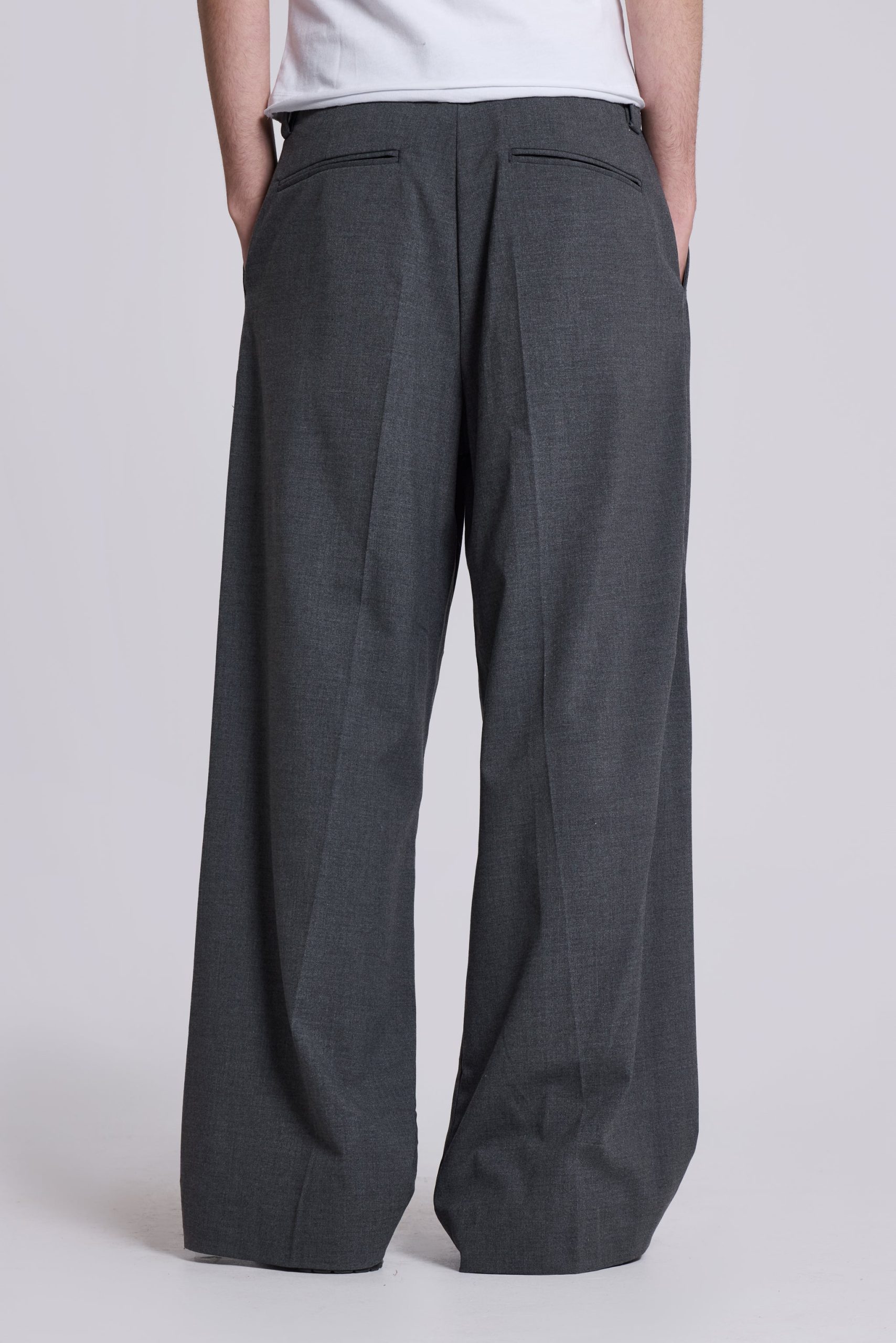 DescriptionThe Goliath Grey Suit Pant is crafted with a classic mid-weight suiting fabric and twin pleats to the waistband for added volume. The design features a fixed waistband with belt loops and sits in a mid-low rise fit.