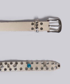Crafted from white cracked leather and embellished with antique silver hardware featuring gems and pearls. Finish your look with the starstud belt.