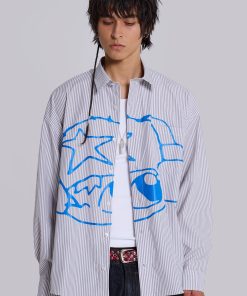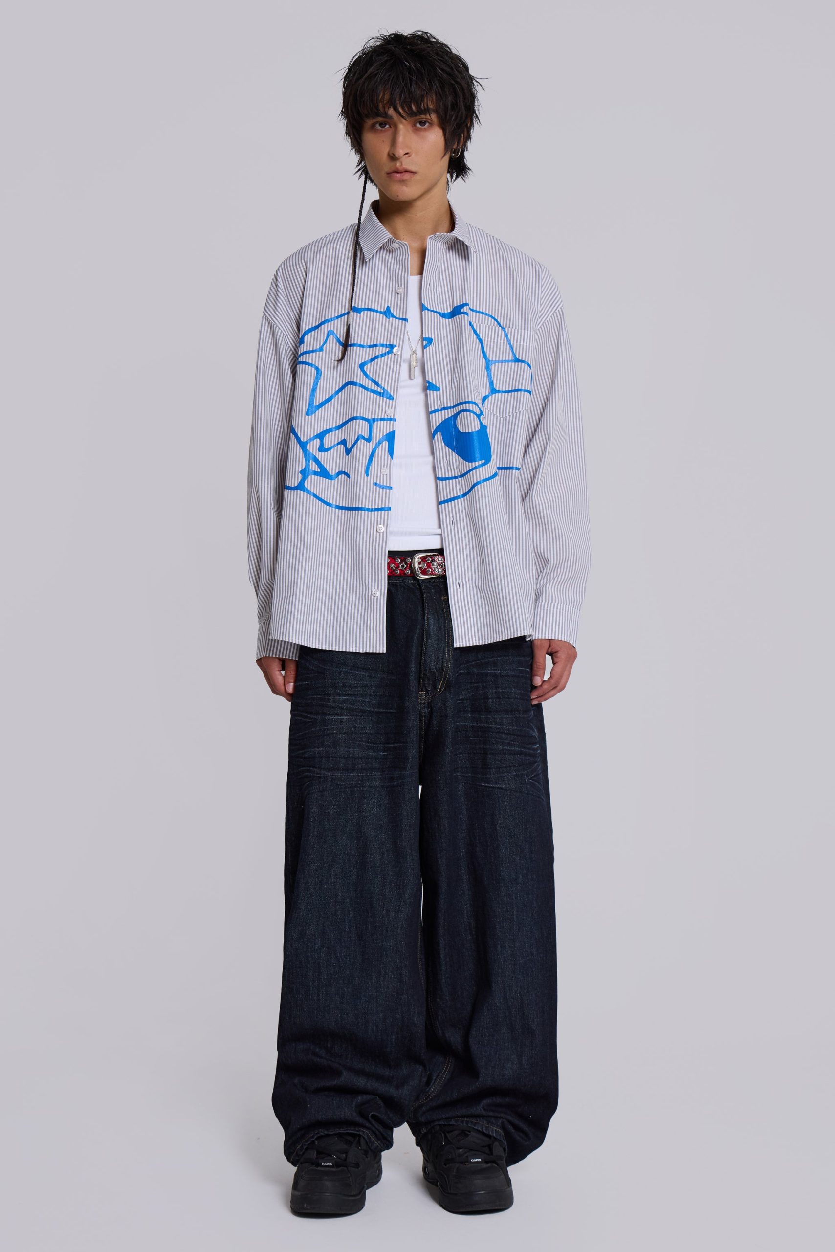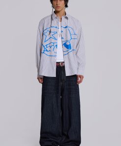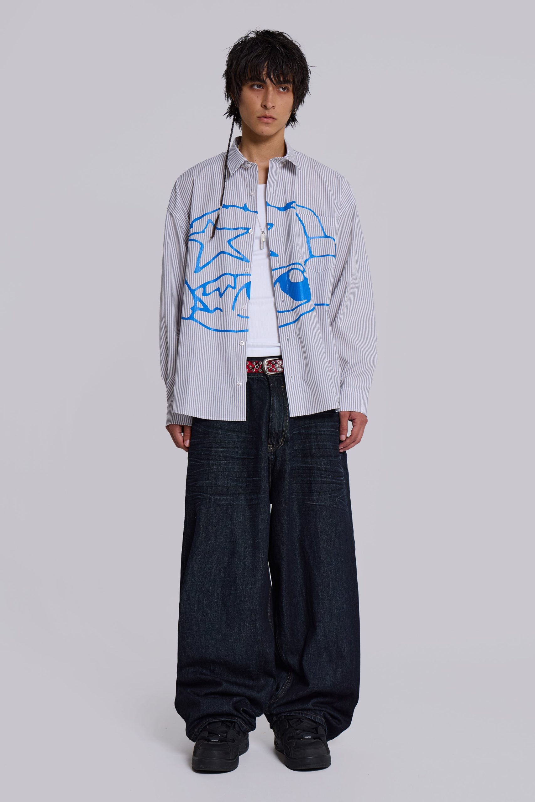 - Large placement screenprint in blue designed by Poster