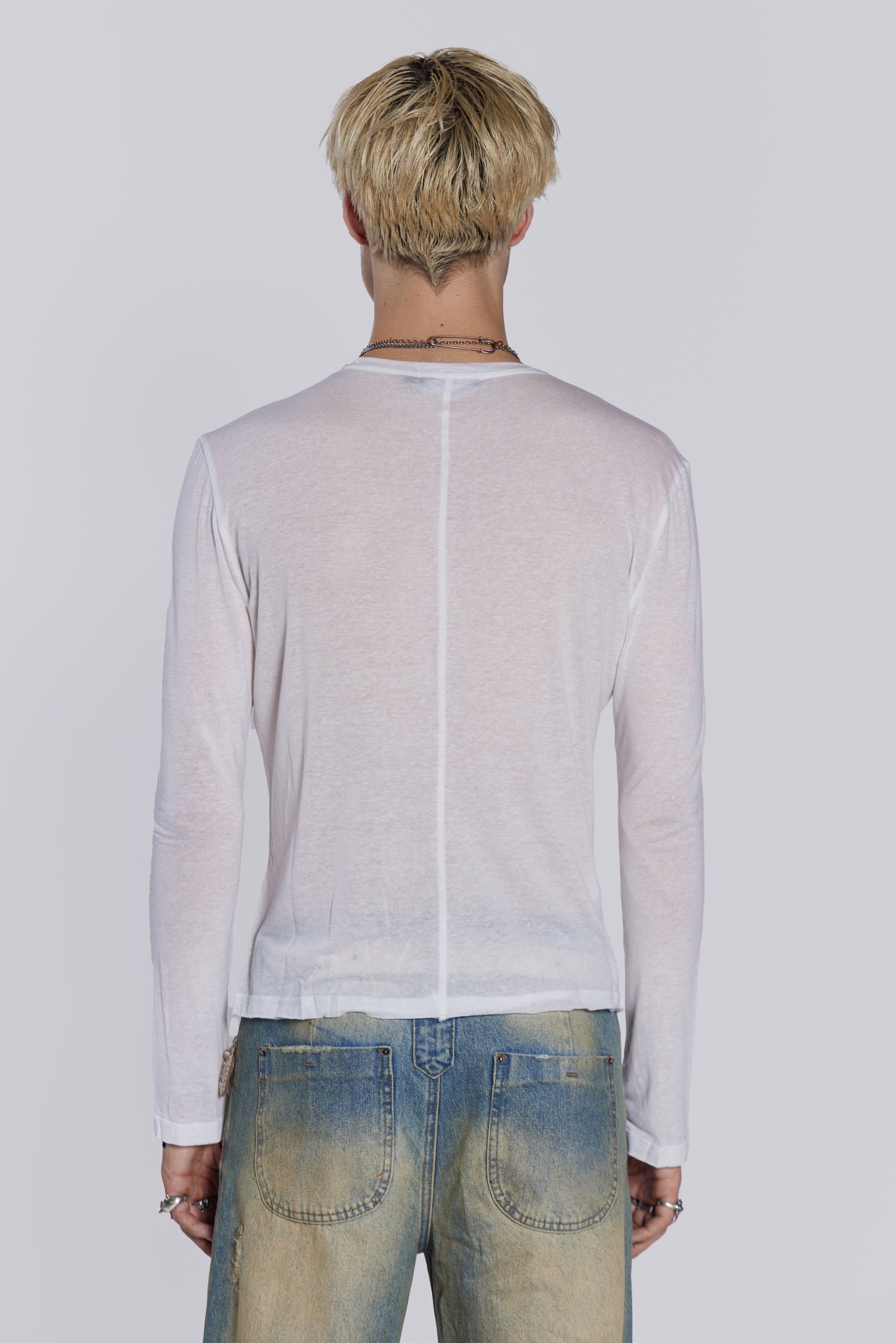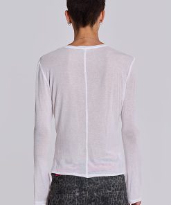 Crafted from a lightweight sheer fabric, the White Mist Long Sleeve provides the perfect layering piece. This top has a slightly cropped body with a twisted side seam detail.