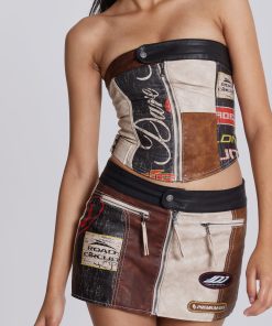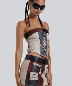DescriptionElevate your look with the Daytona Vegan Leather Corset Top. This corset style top features a popper fastening, dipped hem detail and a functional buckle to complete the look. Complete the ensemble with the matching mini skirt and jacket.