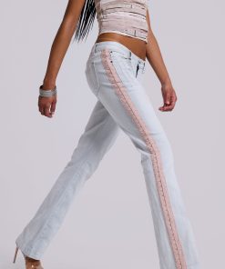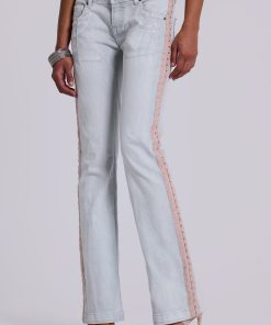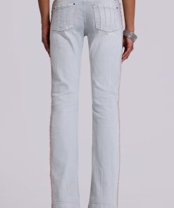 DescriptionHook and eye detail bootcut jeans with seam detailing