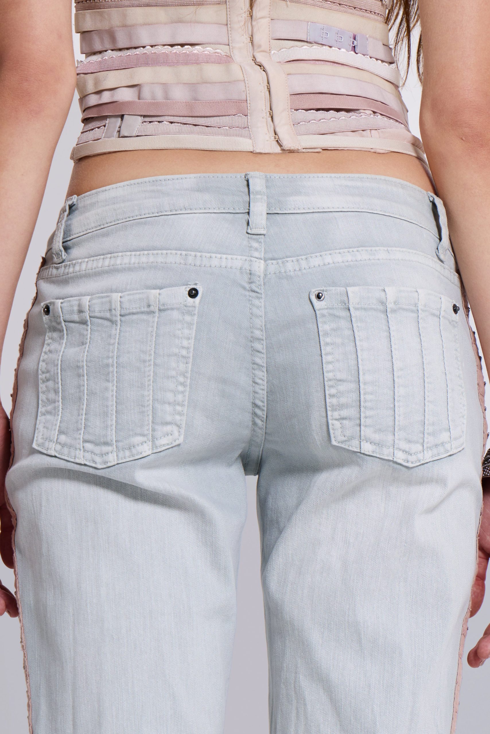 - Back pockets with decorative seam detail