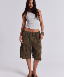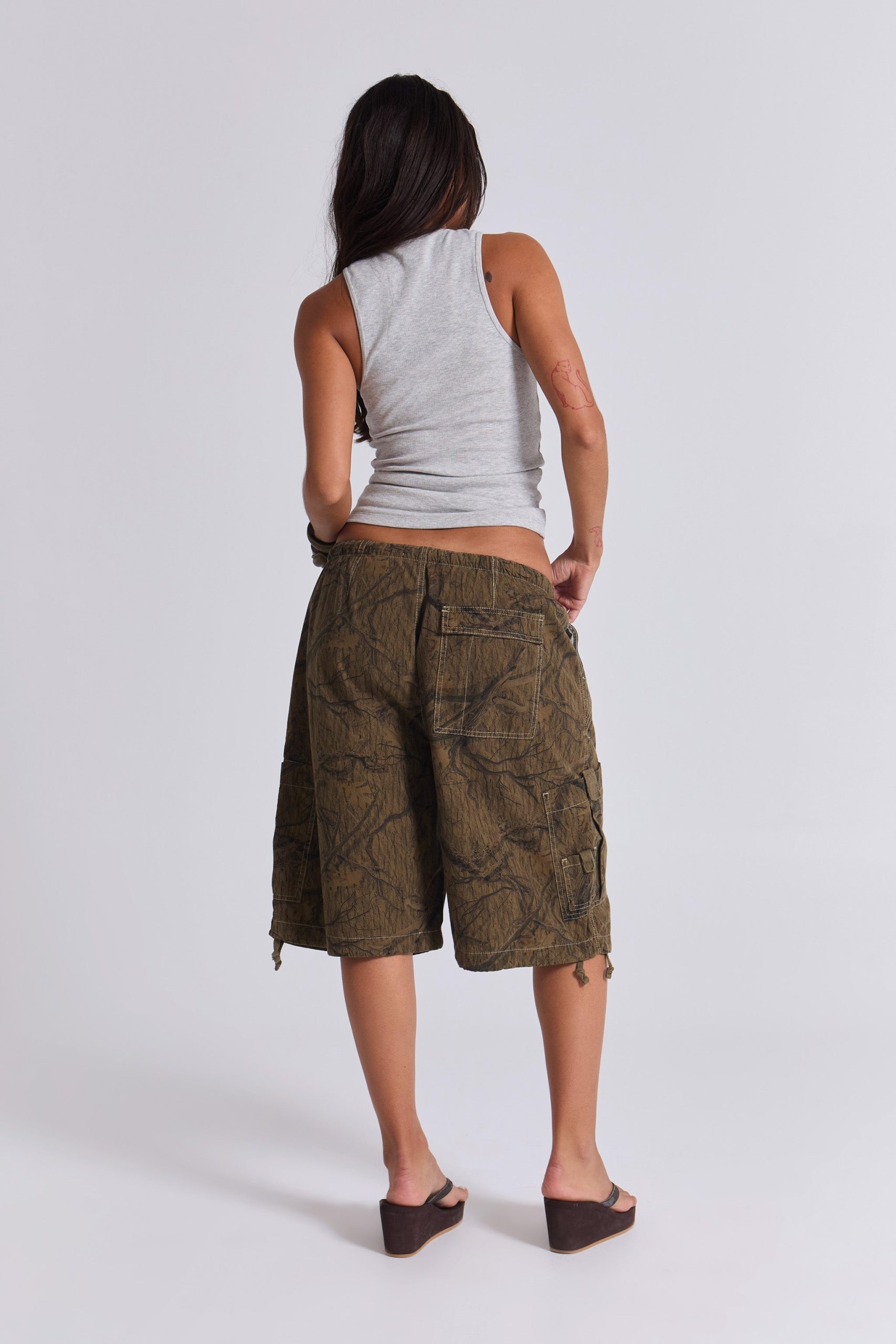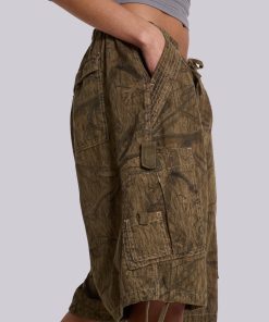 DescriptionDesigned with an oversized fit and a combination of metal eyelets, zip fly and adjustable cotton drawcord, our Forest Camo Parachute Cargo Shorts deliver refined luxury and ultimate comfort. These shorts feature an oversized fit and six-pocket styling, accompanied by an elasticated waistband and adjustable cotton drawcord for added flexibility.