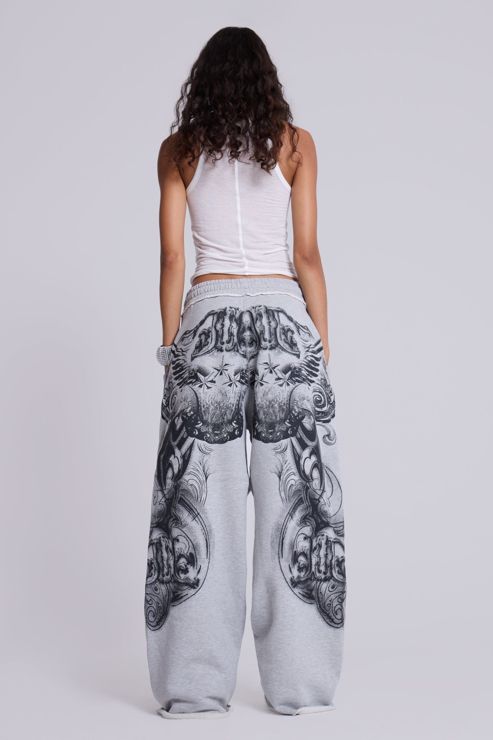Jaded London Women’s Gothic Print Baggy Monster Joggers | Grey