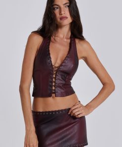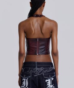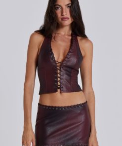 Crafted from a faux vegan leather fabric, the Lynx Corset Top features a corset-style fit with a lace-up front, concealed poppers button fastening at the neck and a zip up back for a secure fit. Complete with a whip stitch detail and princess seams create an refined silhouette.