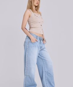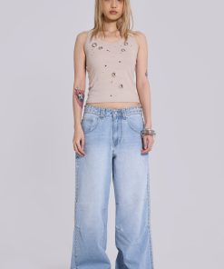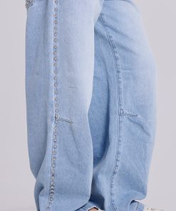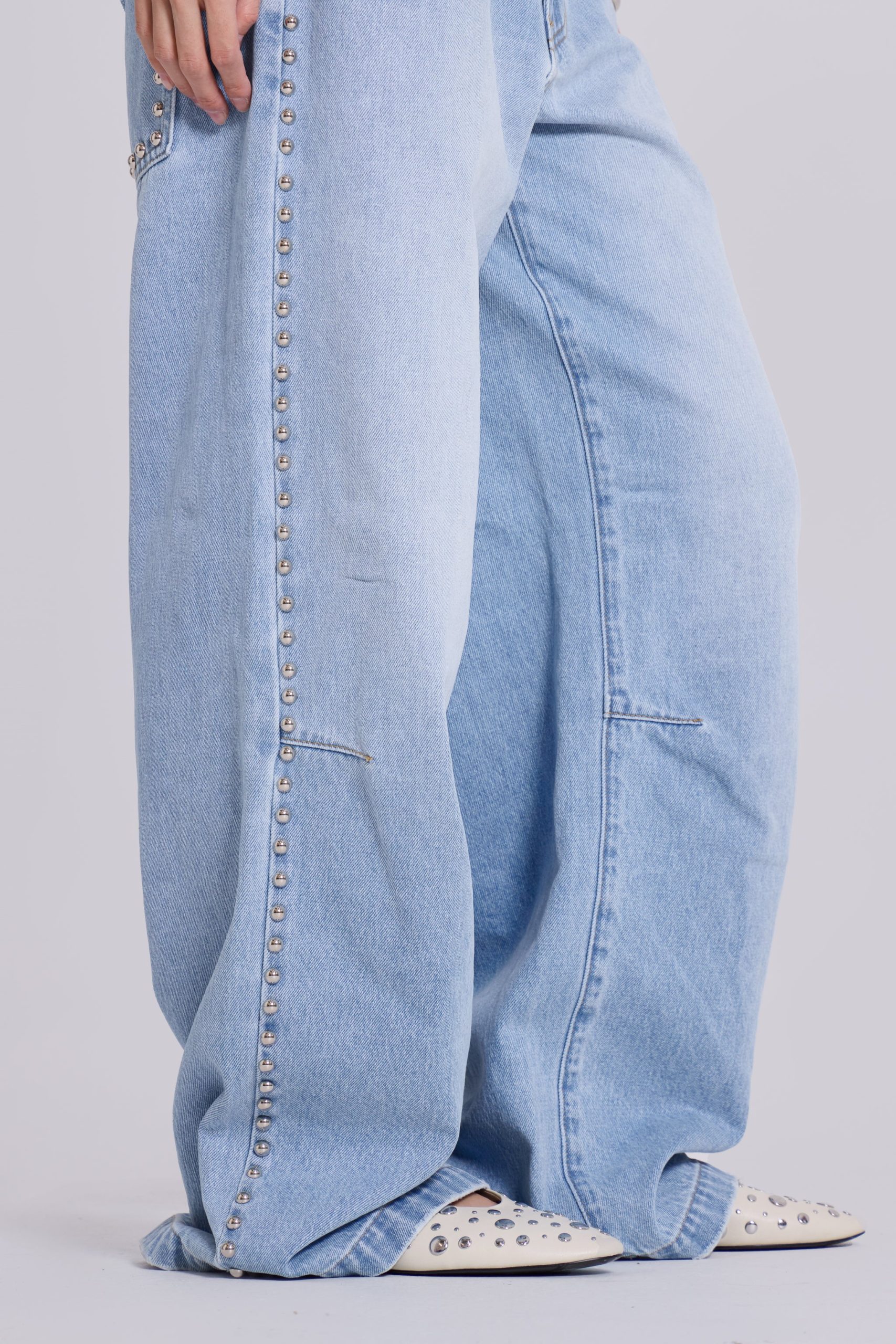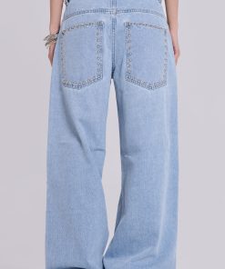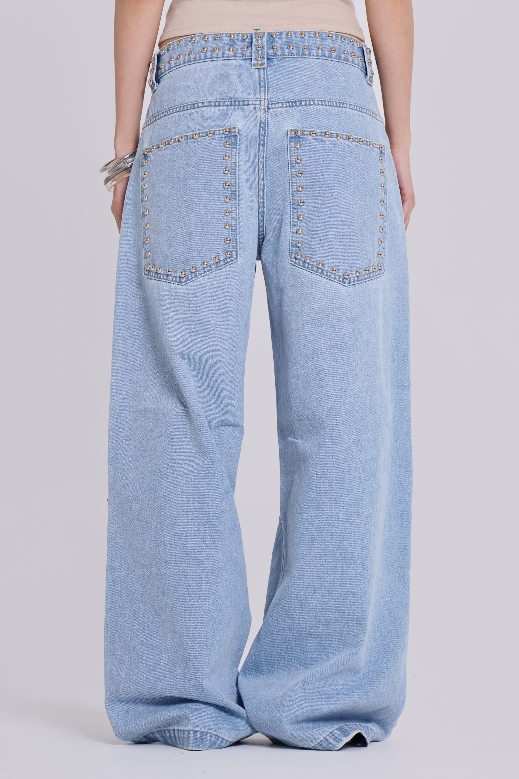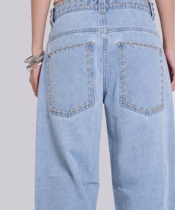 Jaded London Women’s Nailed Studded Colossus Jeans In Light Blue Wash | Blue
