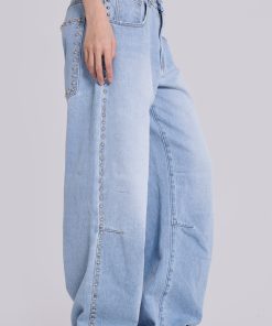 Jaded London Women’s Nailed Studded Colossus Jeans In Light Blue Wash | Blue