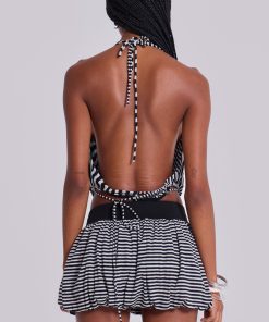 Orla Striped Backless Plunge Top. Backless stripe cowl jersey top.