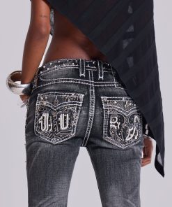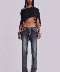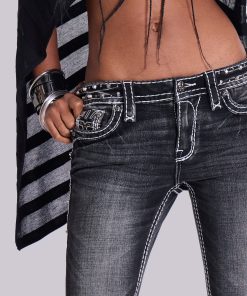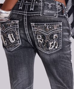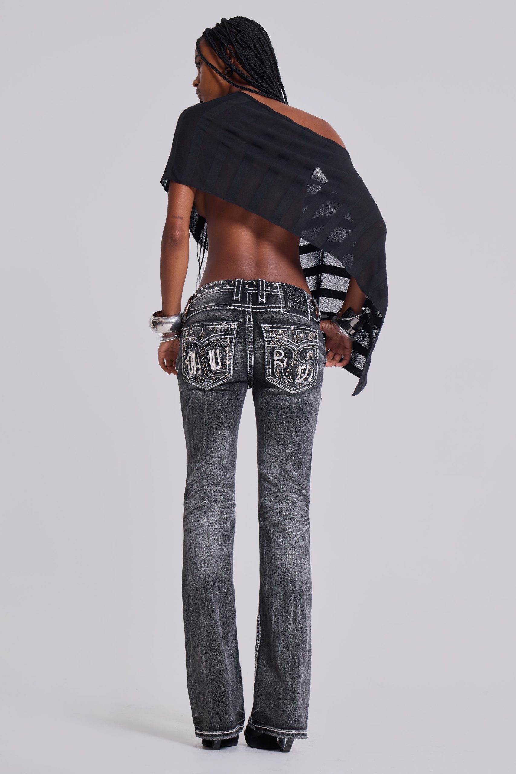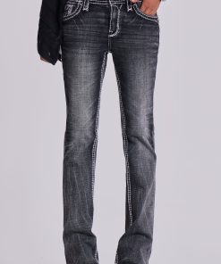 DescriptionRock Revival x Jaded London low-rise denim bootcut jeans in stretch washed black denim with branded back pocket details and metal hardware.