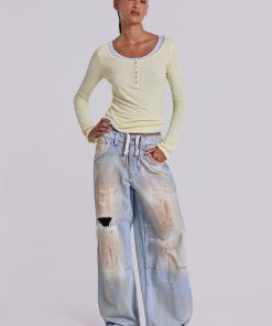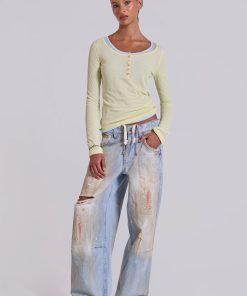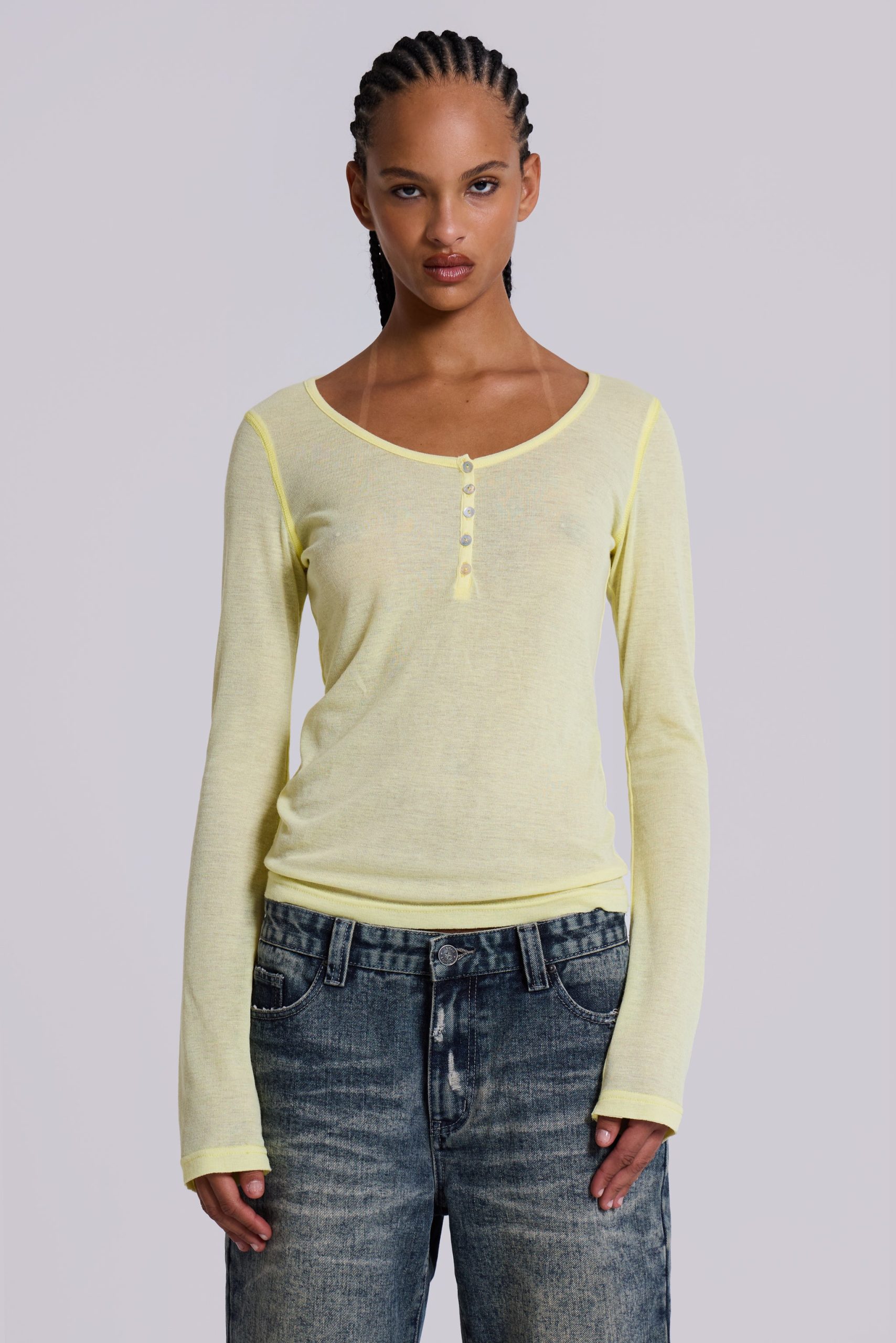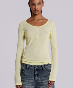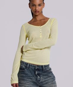 Sheer Henley Top in Buttercup