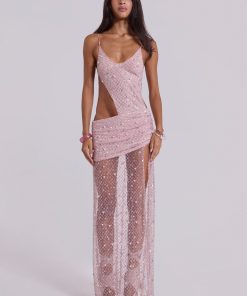 Stellar Asymmetric Hand Beaded Maxi Dress.