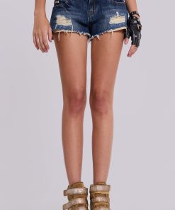 Jaded London Women’s Studded Cross Denim Shorts | Blue