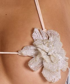 Beaded flower bikini top with elasticated straps.