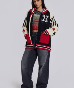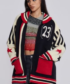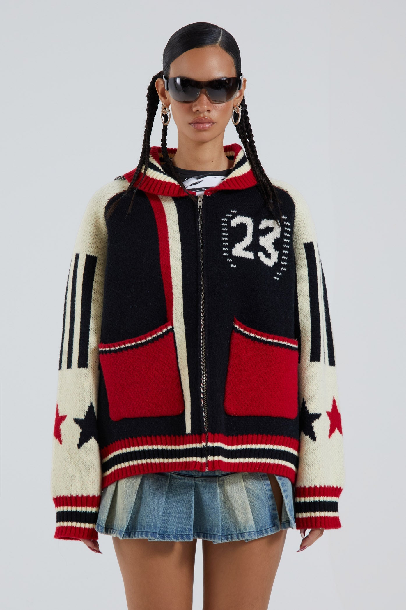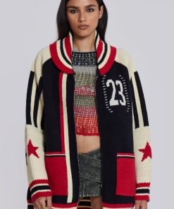 DescriptionIntroducing the Team 23 Knitted Zip Through: Crafted from a heavyweight chunky knit fabric in an oversized fit. This jacket features a shawl collar with patch pocket detailing.