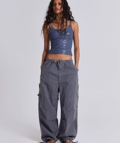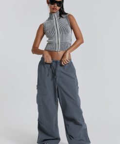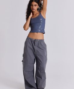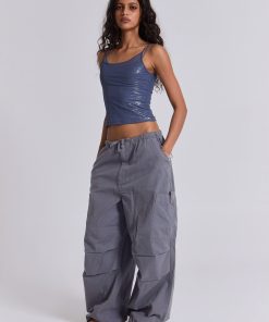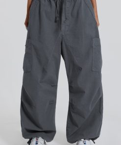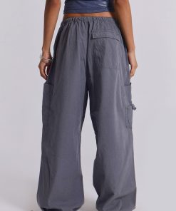 DescriptionDesigned with an oversized fit and a combination of metal eyelets, zip fly and adjustable cotton drawcord, our Vintage Grey Parachute Cargo Pants deliver refined luxury and ultimate comfort. Details such as a pleated knee and inside leg darts ensure a perfect fit, while a six-pocket styling and a unique airpod pocket provide functional convenience. Elevate any look with this timeless and classic silhouette.