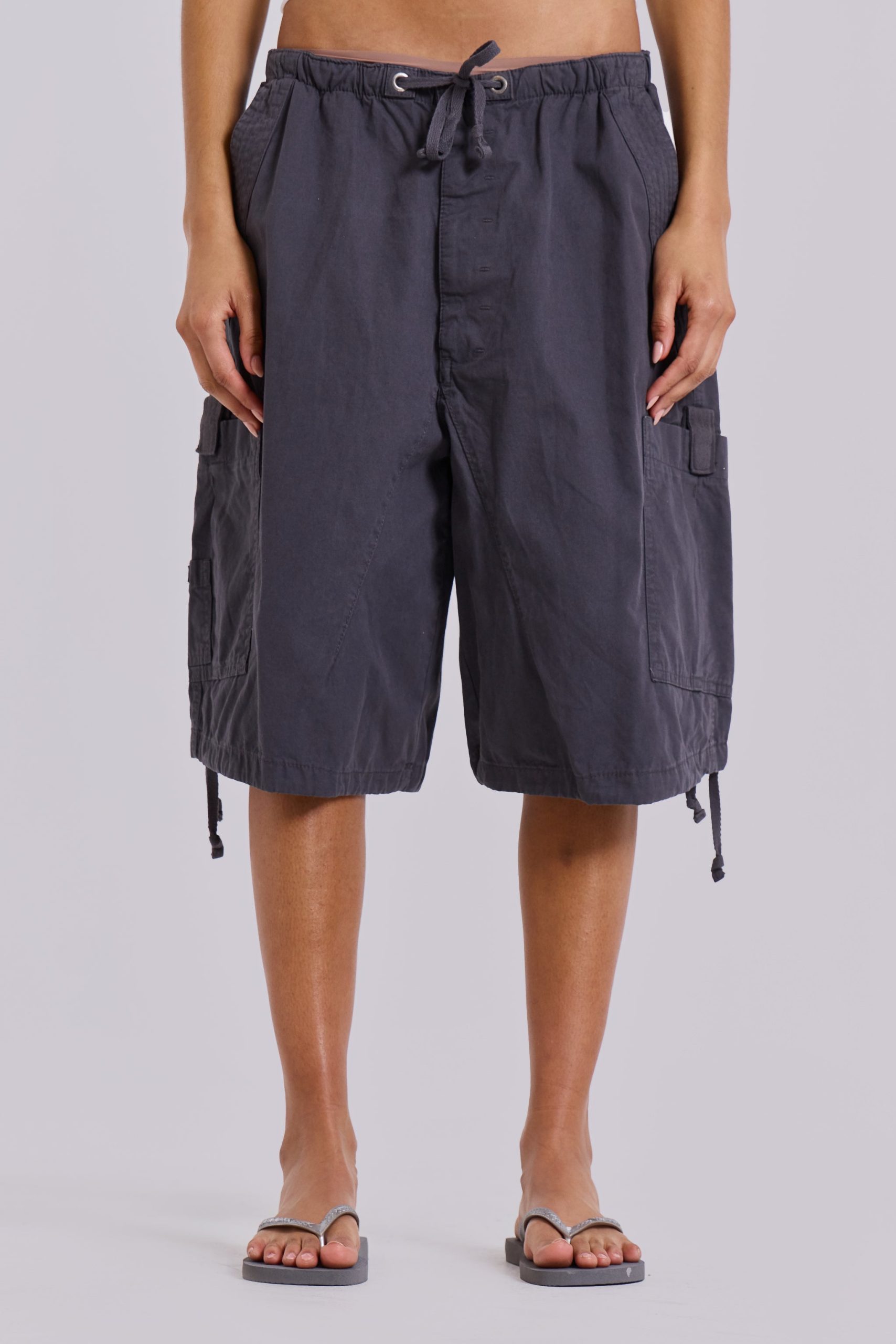 DescriptionDiscover the unparalleled comfort and style of the Vintage Grey Parachute Cargo Shorts. These shorts feature an oversized fit and six-pocket styling, accompanied by an elasticated waistband and adjustable cotton drawcord for added flexibility.