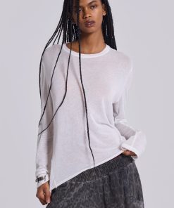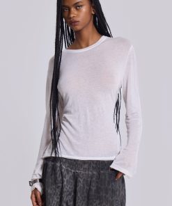 Crafted from a lightweight sheer fabric, the White Mist Long Sleeve provides the perfect layering piece. This top has a slightly cropped body with a twisted side seam detail.